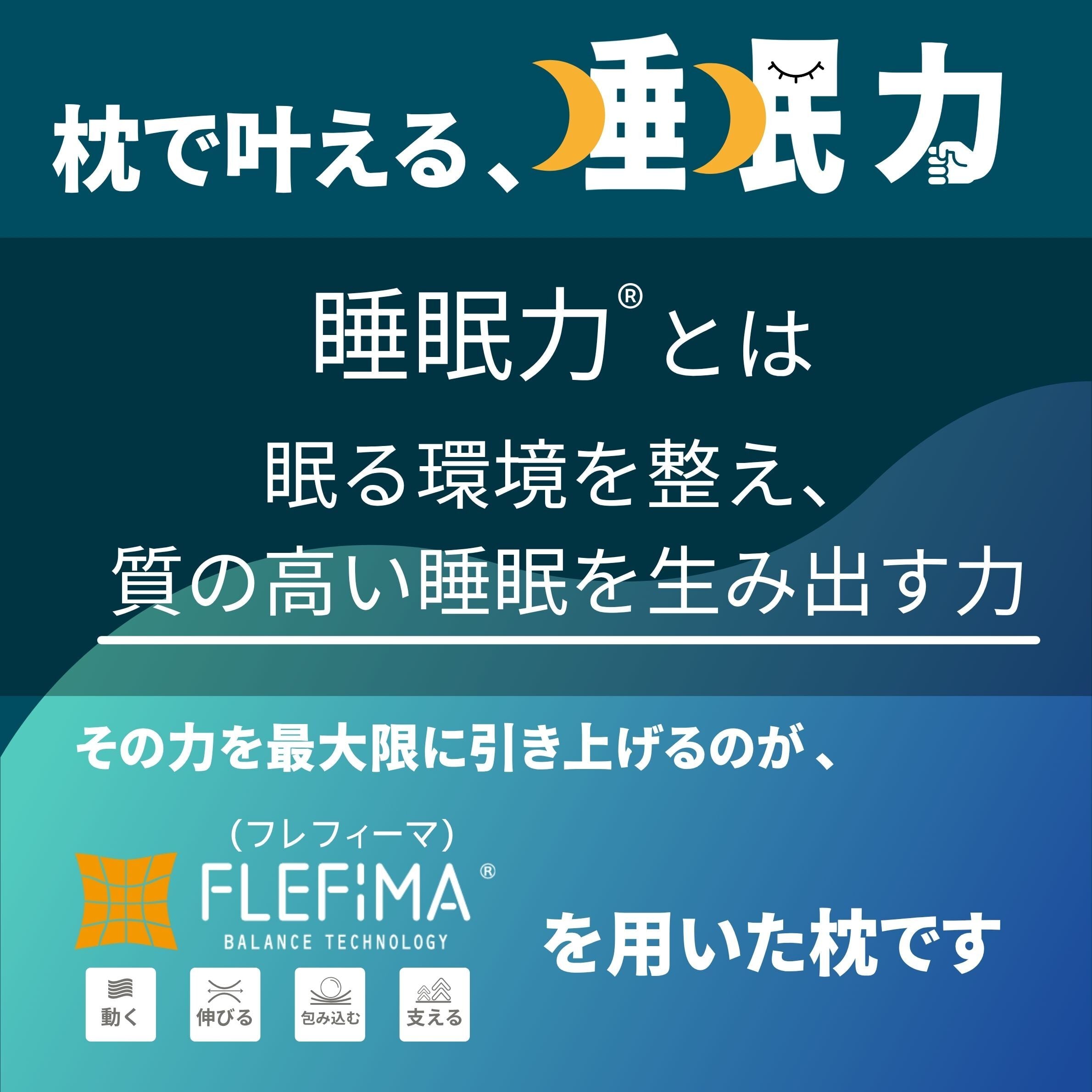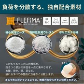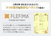 本品の中材は「FLEFIMA-フレフィーマ※」。中材に使う3種の素材(粉砕ウレタン、ポリエステルわた、極小発砲ビーズ)の配合率を変えています。枕本体に使用される中材を配合する技術で特許を取得しています。(特許:第671077号)