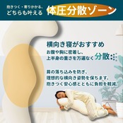 【全身を支える設計】 頭からひざ下まで、全身をカバーできる余裕のサイズ。抱きつくだけで、あなたのカラダのラインに沿ってしなやかに形状を変えます。横向き寝の際の体幹をしっかりサポートし、理想的な寝姿勢をサポートします。
