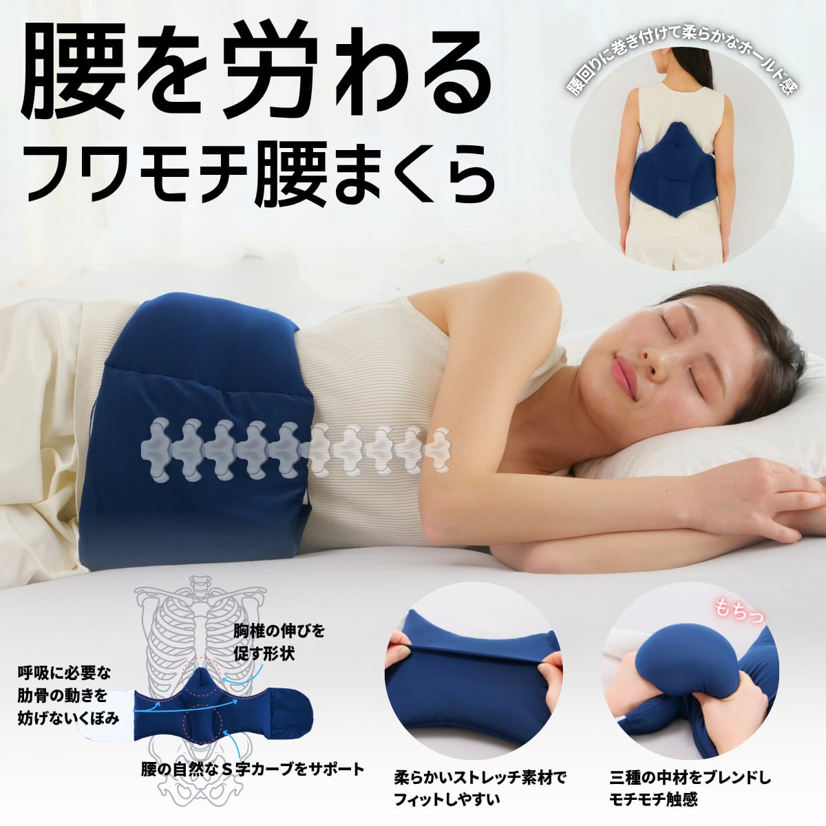 腰を労わるフワモチ腰まくら