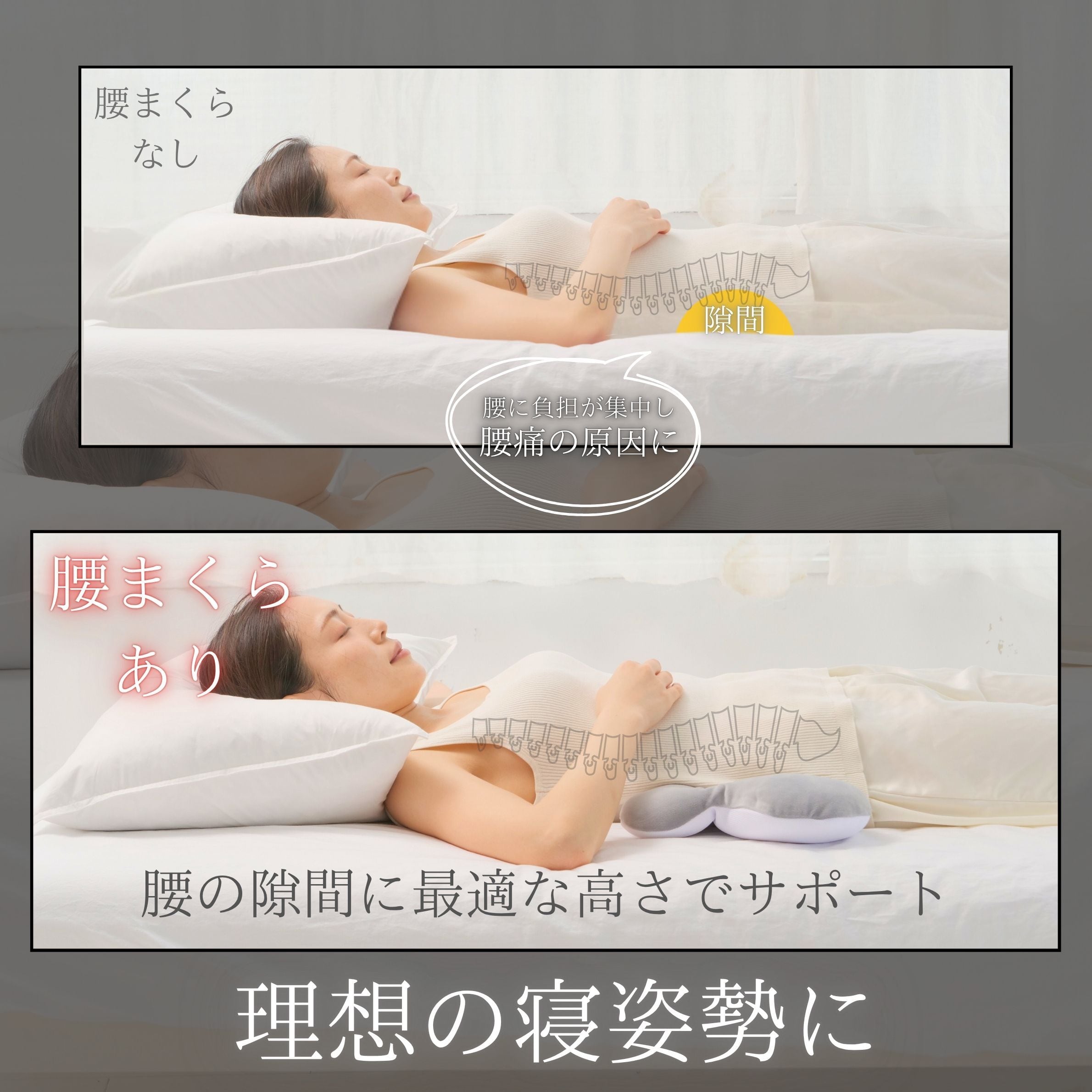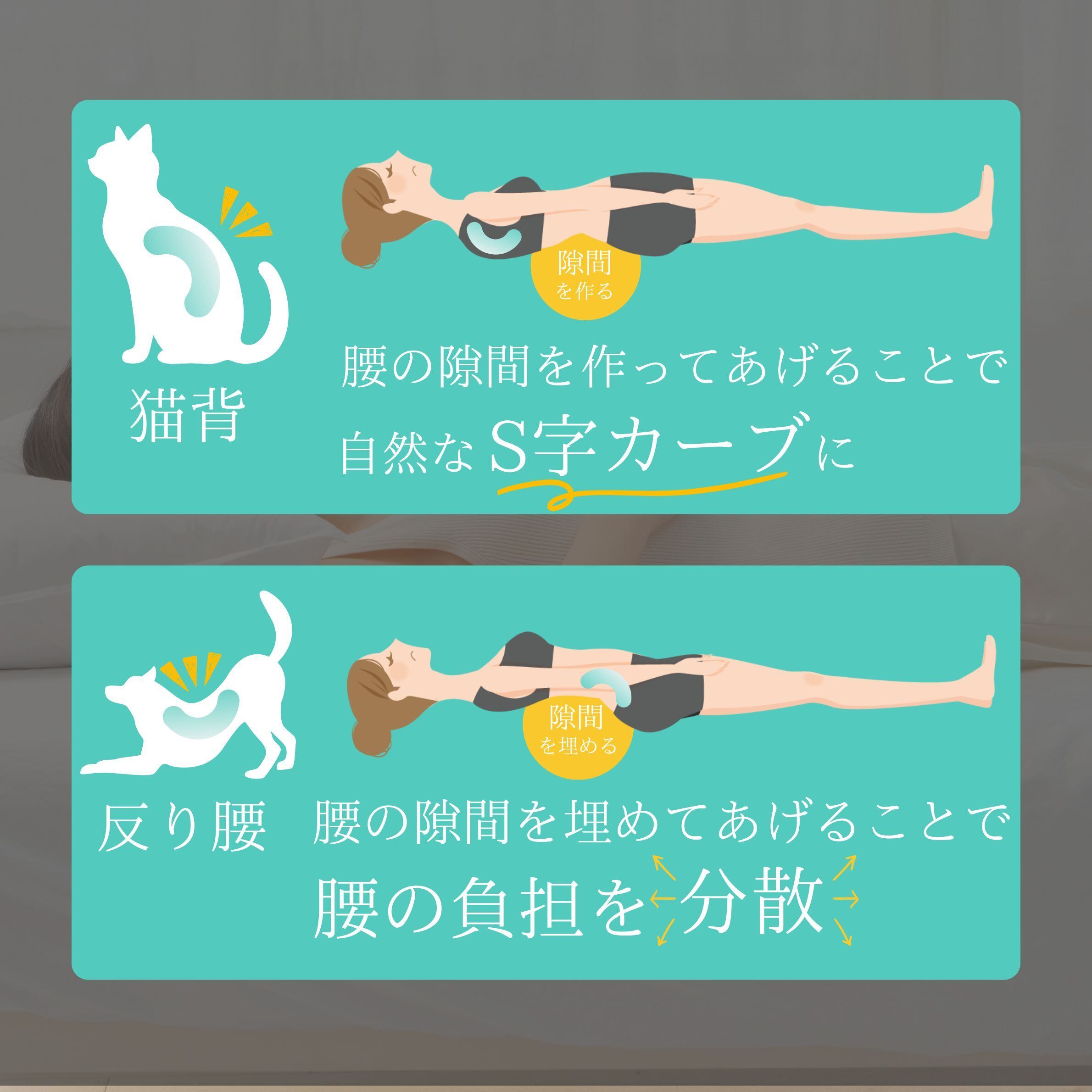 背中のS字カーブを支える中材によって寝返りしやすく、横向き年も安定しやすいです。サイドにボリューム(高さ)があるので寝ている間に腰まくらがズレる心配もありません。