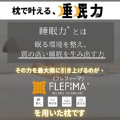 本品の中材は「FLEFIMA-フレフィーマ※」。中材に使う3種の素材(粉砕ウレタン、ポリエステルわた、極小発砲ビーズ)の配合率を変えています。まくら本体に使用される中材を配合する技術で特許を取得しています。(特許:第671077号)