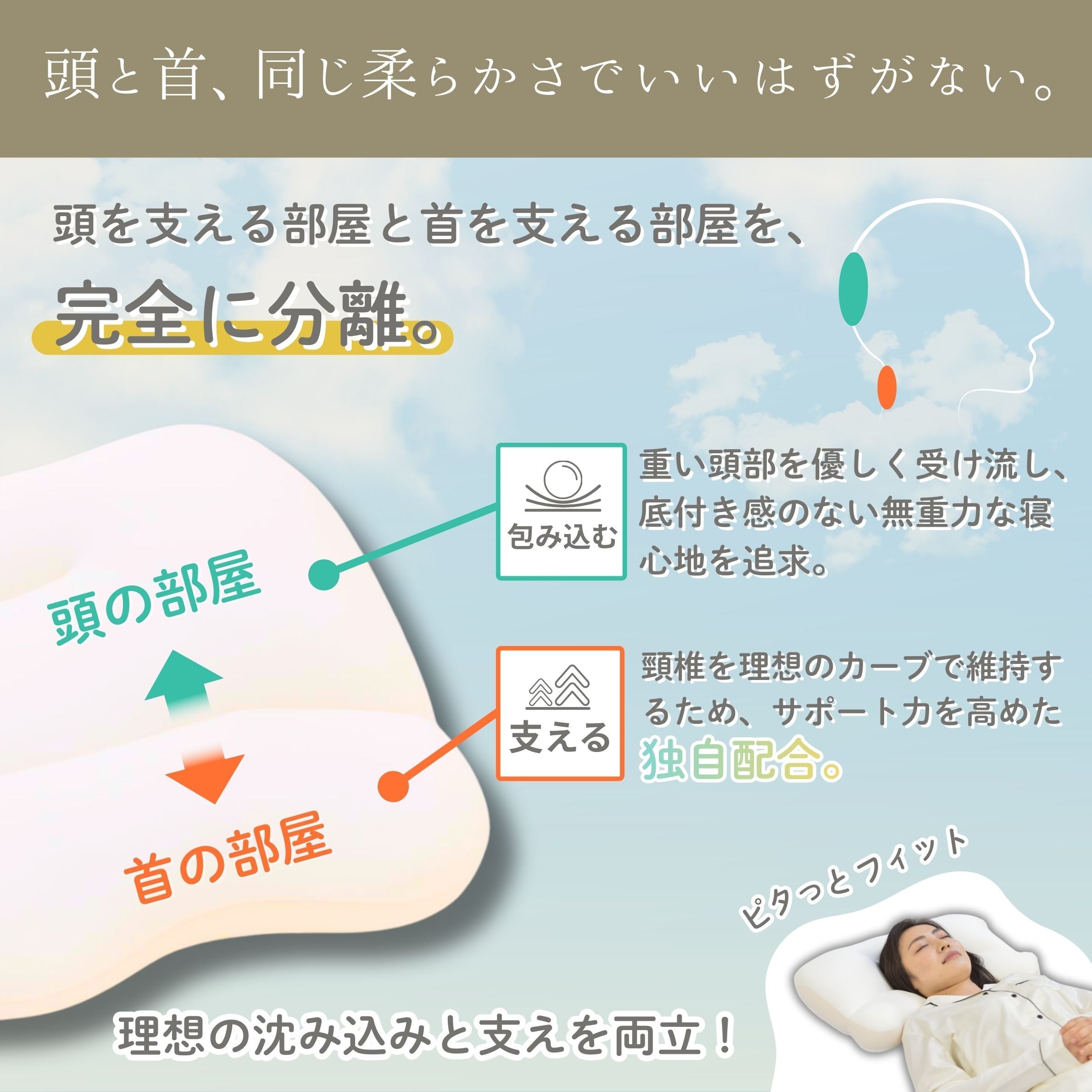 ●しっかりと首の支え! 睡眠にとって最も重要な【首】をいつでも支えます
