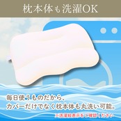本体も洗濯機洗いが可能(ネット使用)。カバーはファスナーを使わず、シルキータッチで気持ちのよいレーヨン混素材で、抗菌防臭加工をしています。360度どの方向にも伸びるので、枕の伸縮を損ないません。