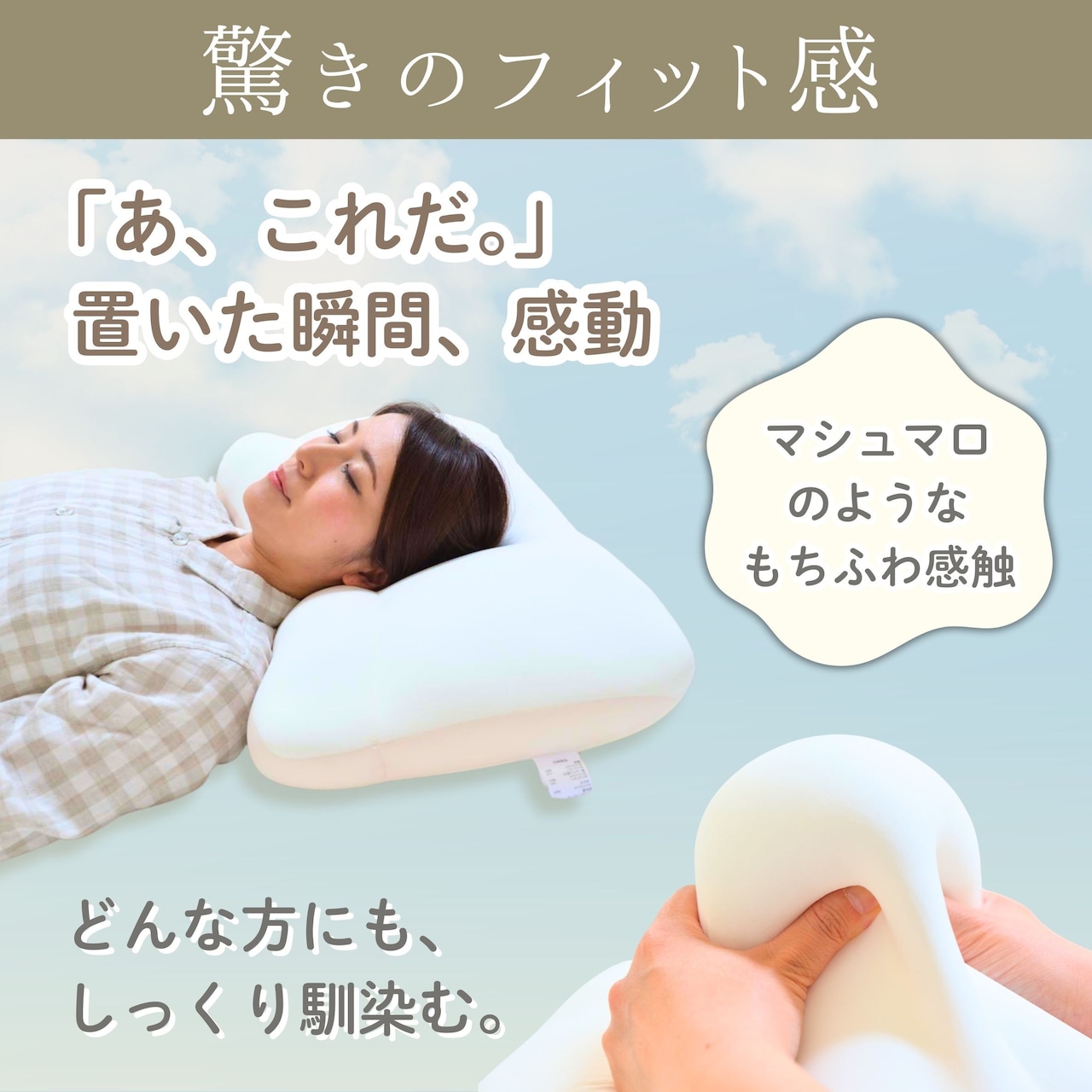 中材と生地とのコンビネーションによって、ふわふわ&モチモチ感を存分に味わえ、心地よいフィット感を得られます。