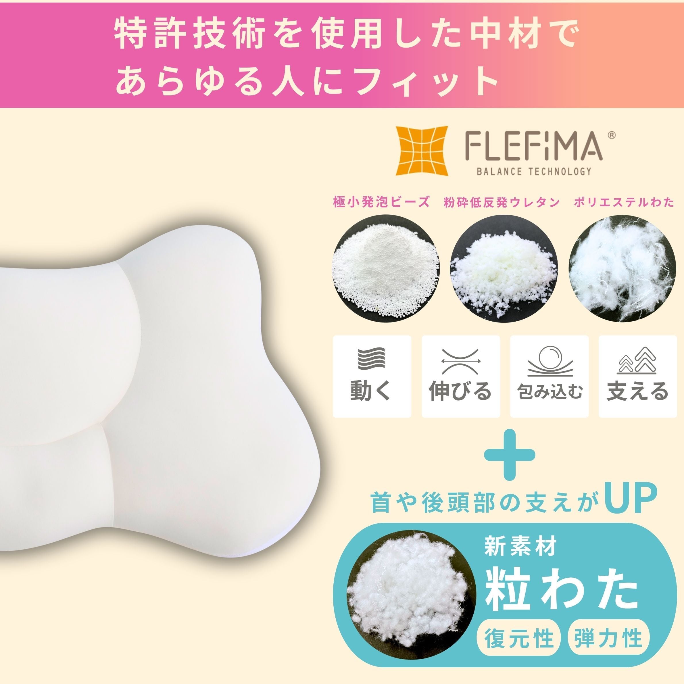 「女神の無重力まくらシリーズ」の特徴である“ふわっふわもっちもち!” この特徴を更に追求しました。